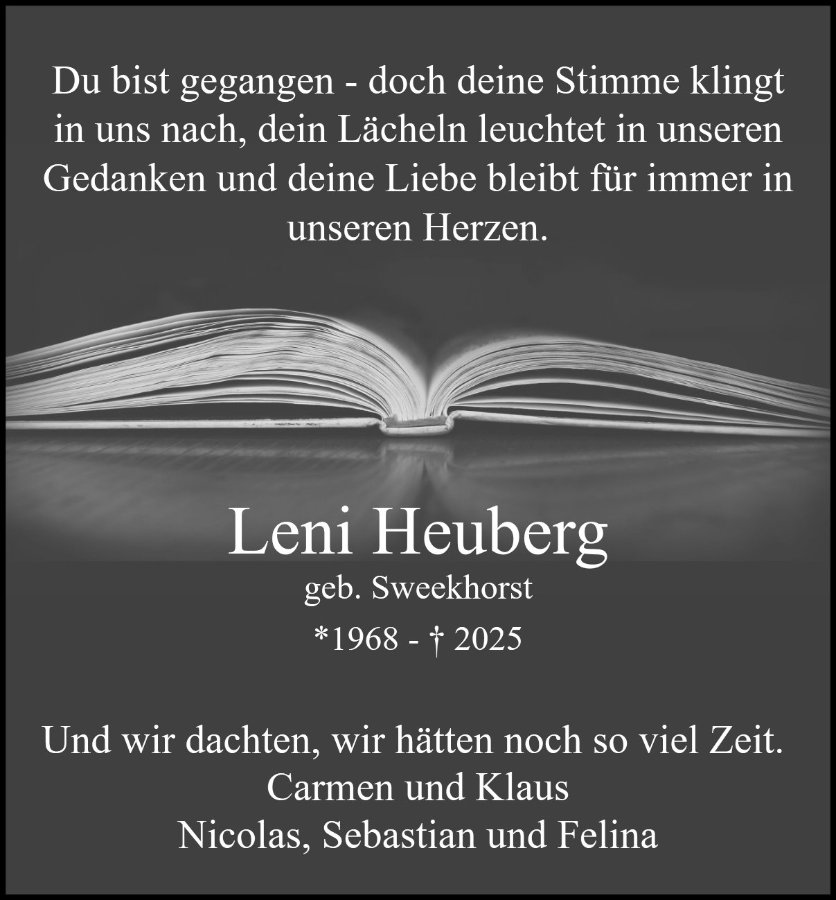 Es ist unbegreiflich und viel zu früh, dass Leni aus dem Leben gerissen wurde. Ich bin unendlich traurig.